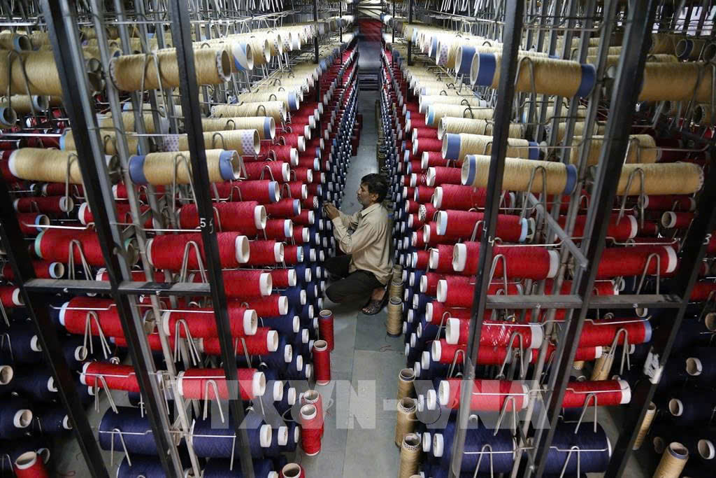Công nhân kiểm tra các ống sợi trên máy dệt thảm tại một nhà máy ở ngoại ô Jammu, Ấn Độ. (Ảnh: AFP/TTXVN)